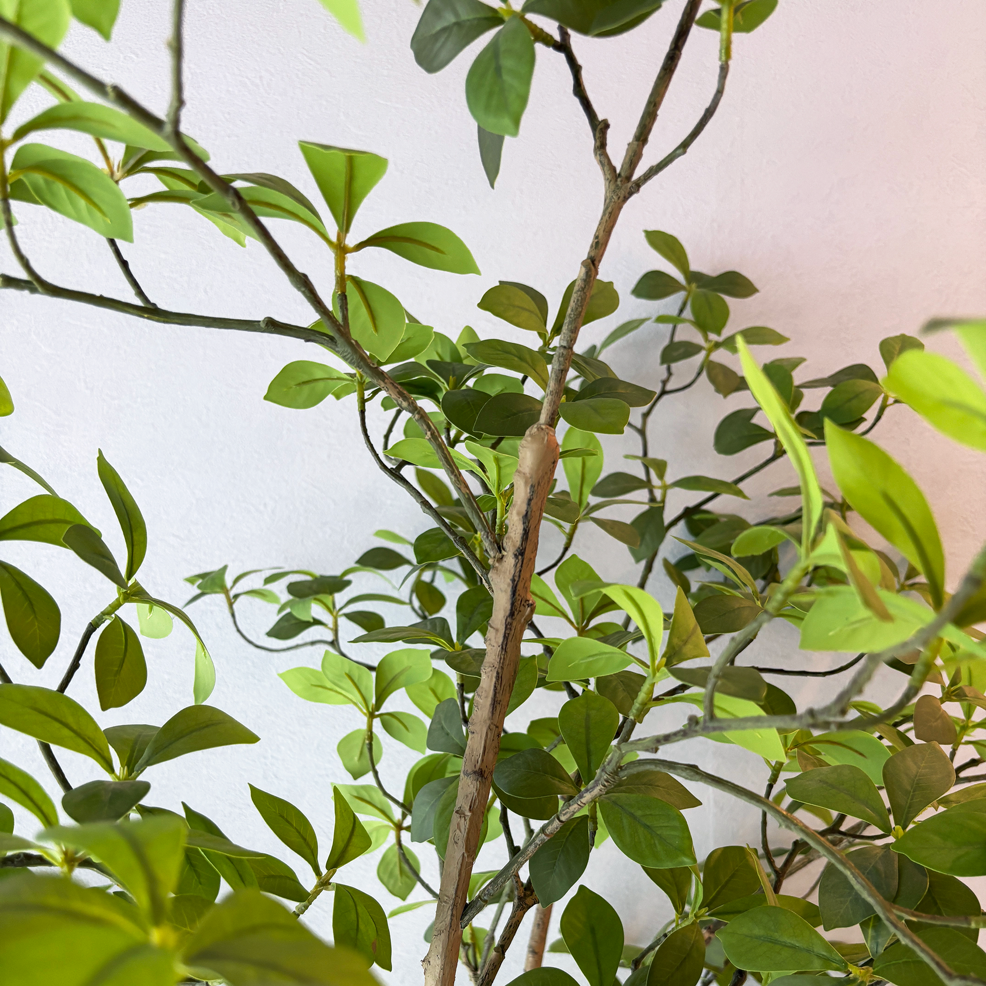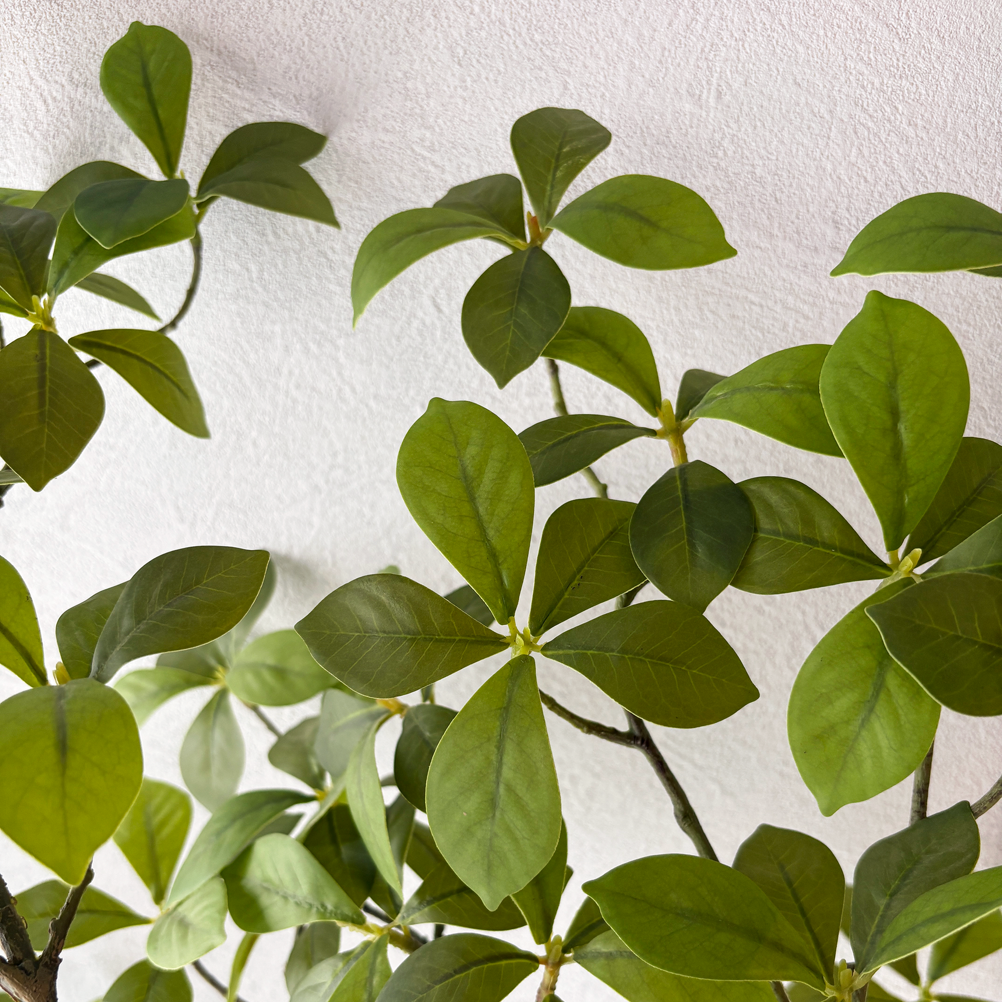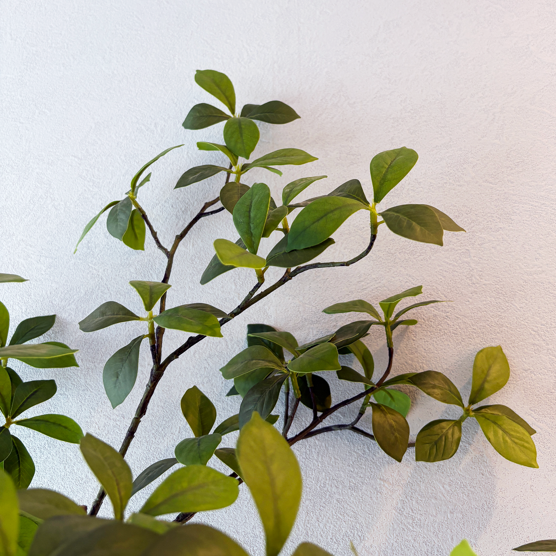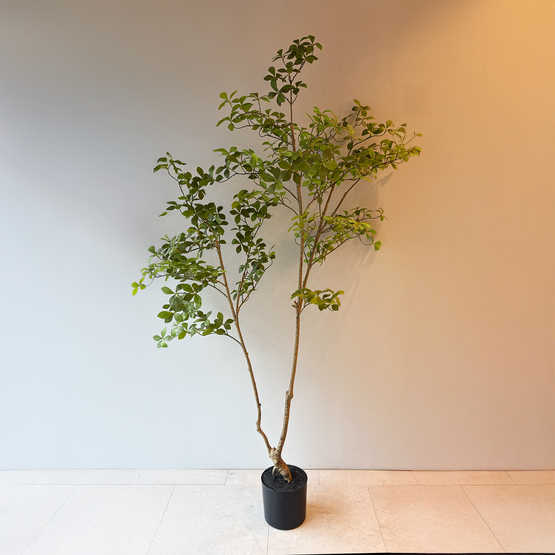 全高約175cmの樹木としての存在感がありながらも圧迫感はなく、リビングや玄関、オフィス、カフェ、モデルルームの装飾など、幅広いシーンにおすすめ。ドウダンツツジのような軽やかな葉姿が、空間に爽やかなアクセントを加えてくれます。
