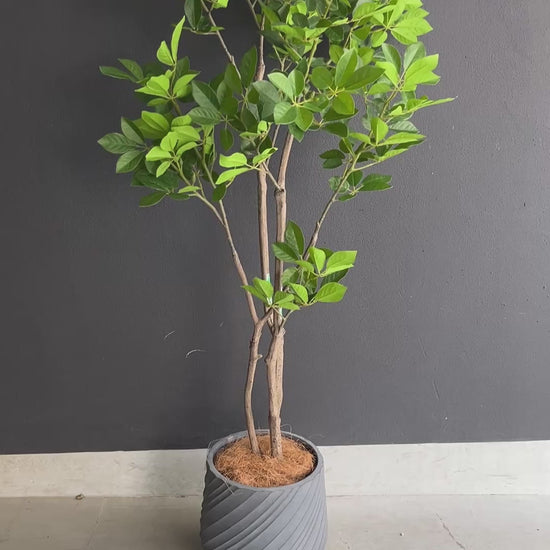 三本の幹がつくるさりげない高低差が、空間に自然なリズムと奥行きを生みます。整いすぎない枝ぶりは、まるで窓辺の風を受けているかのような軽やかさ。